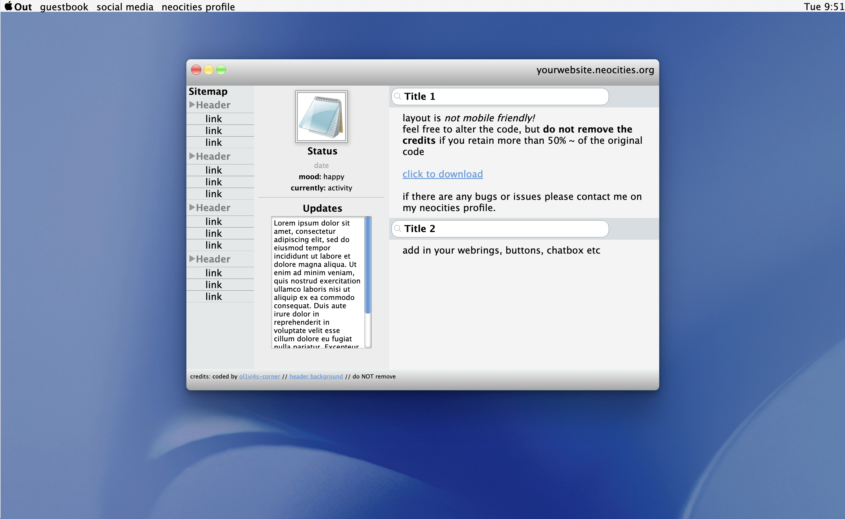 mac os x desktop/frutiger aero/retro themed layout
